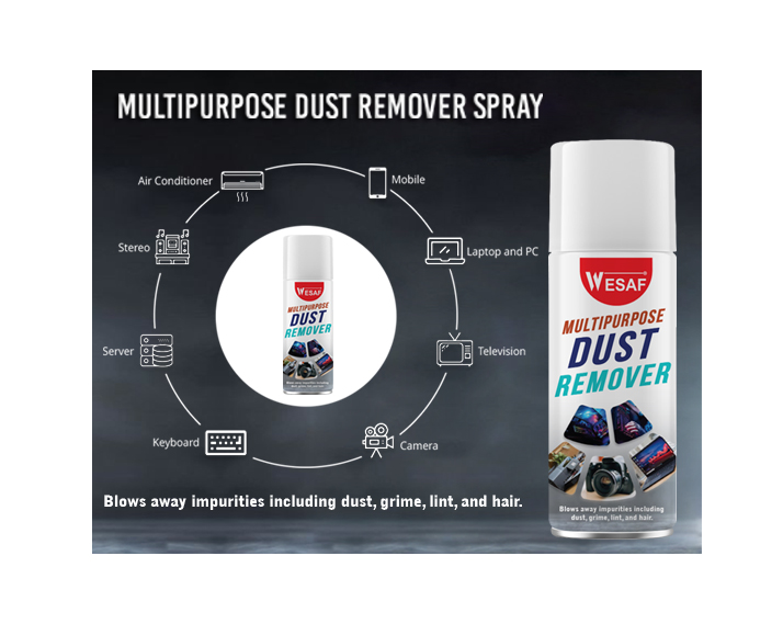 Wesaf Multipurpose Dust Remover safely removes dust by releasing a dry, high-pressure gas brust. dirt and lint from from