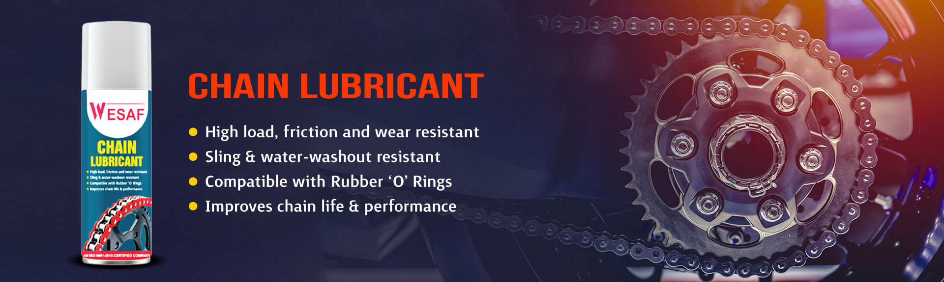 Description : Chain lubricant spray is used for all motorcycle chains (Oring, X-ring or Z-ring). Specially developed in the wesaf racing division for road racing and endurance. The fling-off resistant formulation with solid lubricant additives reduces friction which enhances performance. This ensures optimum power delivery. High degree of anti-wear protection, also under extreme operating conditions.