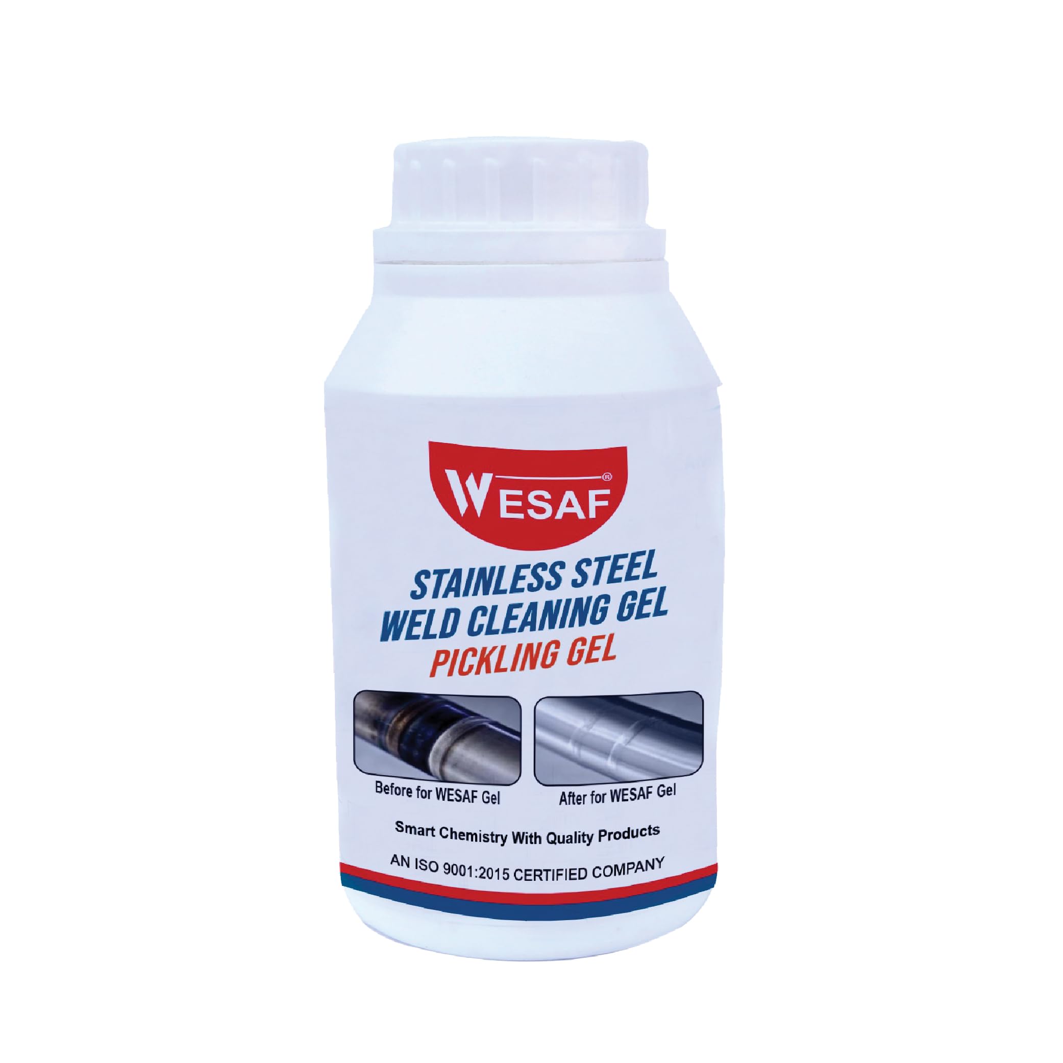 Transform your stainless steel welding work with WESAF’s professional-grade weld cleaning gel. This specialised pickling gel effectively removes discolouration, heat tints, and oxidation from stainless steel welds, restoring the metal’s original appearance and surface finish. The gel consistency ensures precise application and better coverage of the treated area, minimising waste and improving efficiency. The before-and-after results demonstrate the gel’s capability to achieve a clean, uniform finish on welded joints. This industrial-strength formula is designed for professional welders and metalworking applications where high-quality surface finishing is essential. The convenient packaging allows for easy application and storage. For optimal results, follow proper safety protocols and application instructions.