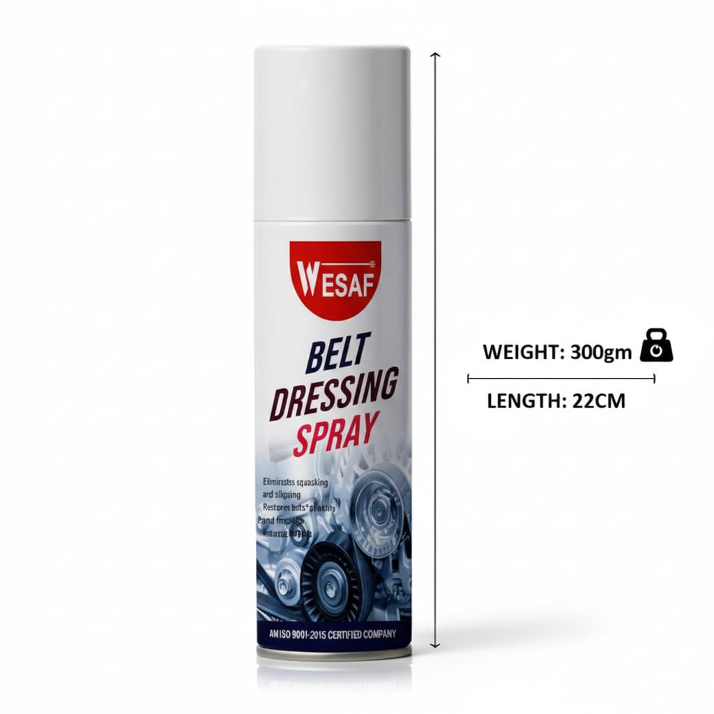 Wesaf’s Belt Dressing Spray is an essential product for optimizing belt drives. This aerosol spray eliminates squeaking and slipping, restoring belts’ pliability and extending their life. Its tacky polymeric formulation provides lubrication to the contacting surfaces of the belt and pulley, reducing strain on bushings and bearings. It optimizes belt tension, reducing the need for frequent tightening. The spray conditions V-belts and fan belts, preventing premature wearing and keeping them flexible and soft to enable repeated bending. With an ISO 9001:2015 certification, this spray ensures optimal output from your belt drive system.