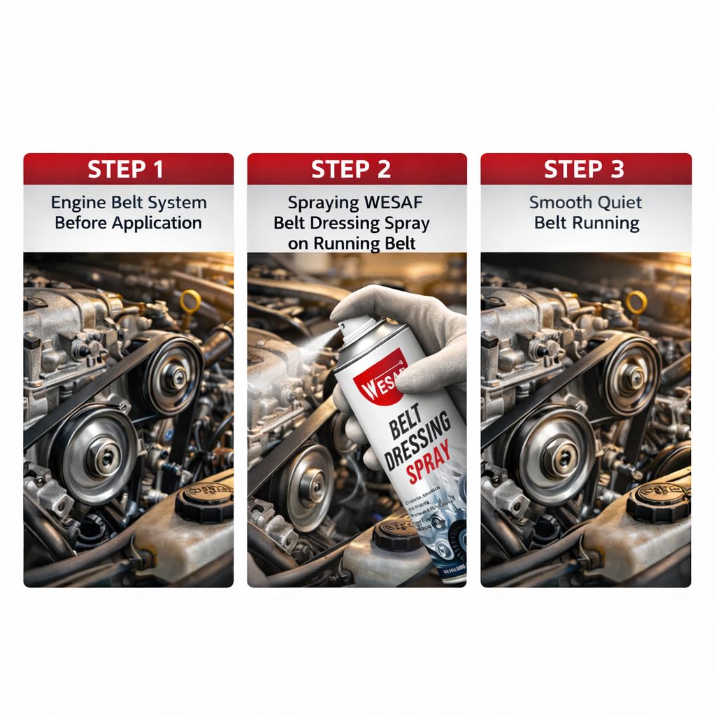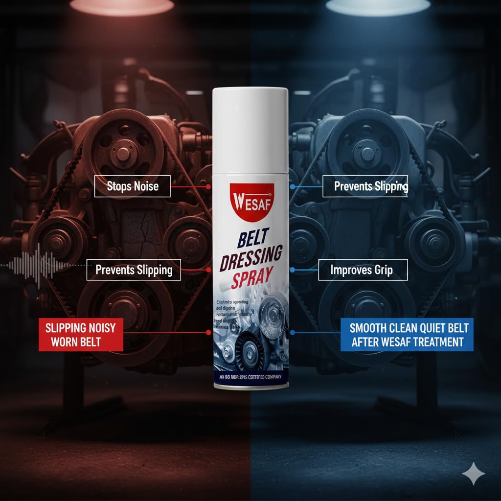 • PREVENTS SLIPPAGE: Belt dressing spray eliminates squeaking and slipping, restoring belt grip and pliability for reliable machinery operation