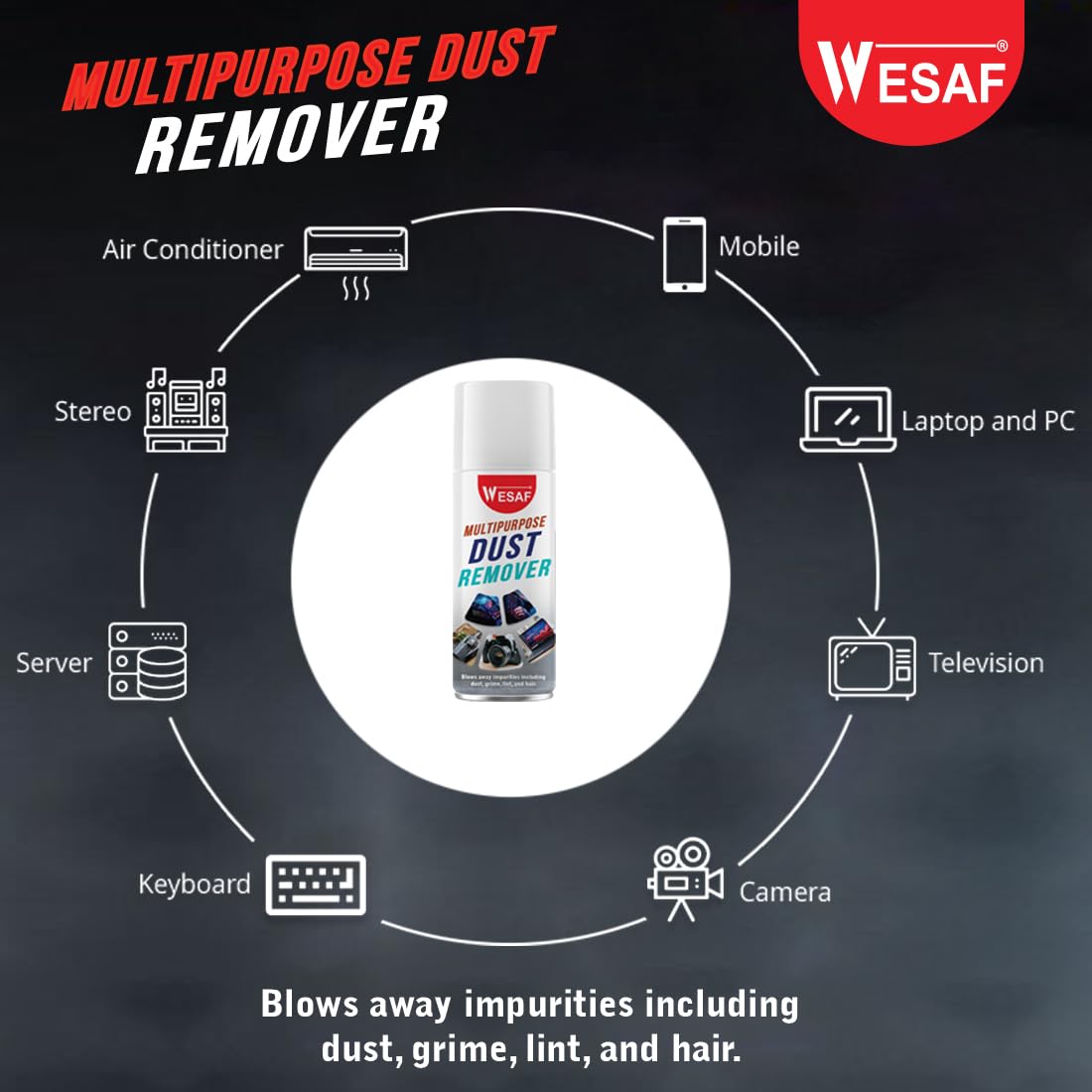 WESAF Multipurpose Dust Remover is your ultimate solution for keeping electronic devices and equipment pristine. This powerful 450ml air duster effectively blows away dust, grime, lint, and hair from a wide range of devices including air conditioners, mobile phones, laptops, PCs, televisions, cameras, keyboards, stereo systems, and servers. The high-pressure spray delivers a concentrated burst of clean, residue-free air that reaches deep into crevices and delicate areas where regular cleaning methods can’t access. Perfect for both home and professional use, this non-corrosive formula ensures safe cleaning of sensitive electronic components and precision equipment. The versatile spray can helps maintain optimal performance of your devices by preventing dust build-up and potential overheating issues. Keep your valuable electronics running smoothly with regular maintenance using this efficient dust removal solution.