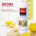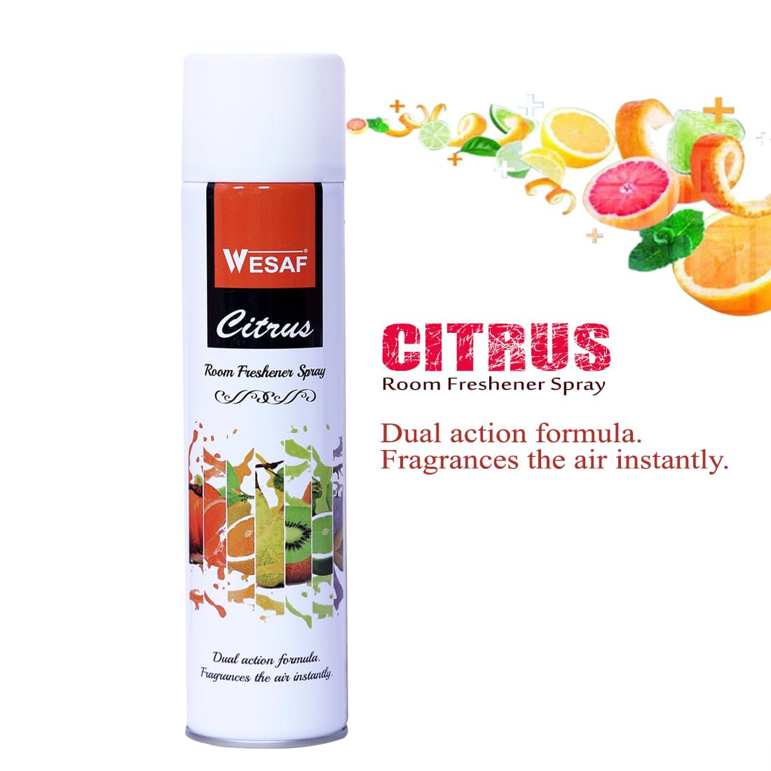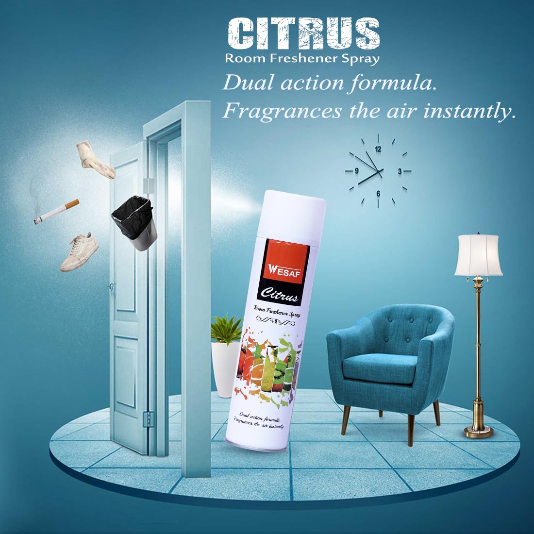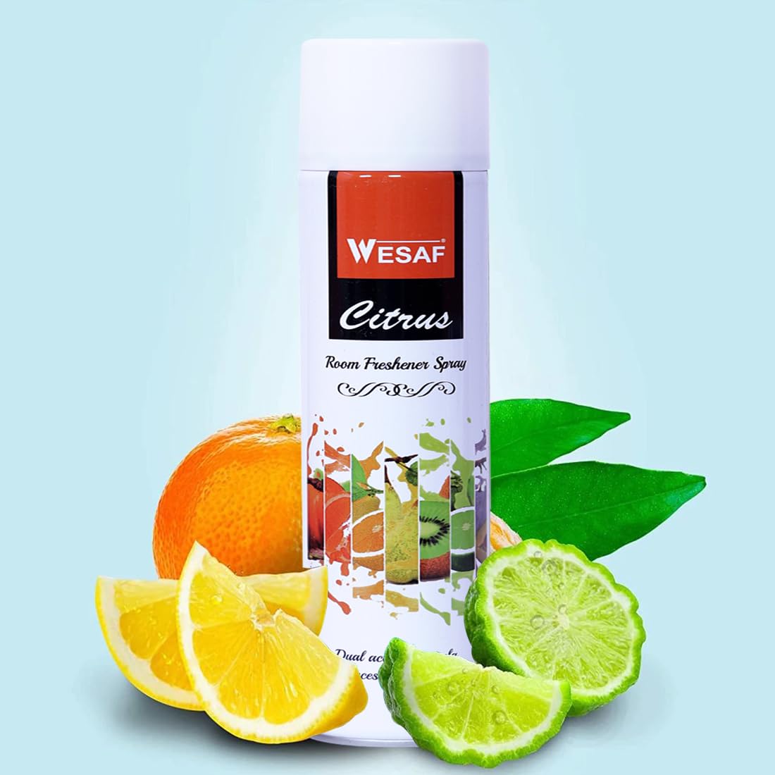 WESAF Room Air Freshener Elevate your living space with a burst of delightful citrus fragrance using our premium room freshener spray. Designed to effortlessly neutralize odours and infuse any room with a refreshing scent, this dual-action formula instantly fragrances the air. Simply spray in your desired area and enjoy a clean, pleasant atmosphere that enhances your home’s ambiance. Experience the invigorating aroma of citrus fruits that will uplift your mood and create a welcoming environment. Crafted with care, this room freshener offers a long-lasting fragrance that will leave your space smelling delightful.